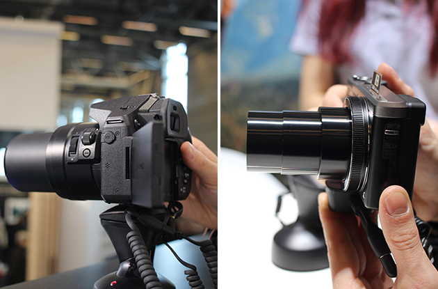 La 5ème version du RX100 était également à l'honneur. Sous le "capot" on trouve un capteur d'un pouce, 20 Mpx, un zoom 24-70 mm avec une ouverture f/1.8 -2.8, un écran de 7,5 cm et une sensibilité allant de 125 à 12800 ISO... le tout dans un boîtier de la taille d'un compact ordinaire, bref un concentré de technologie au sens propre !