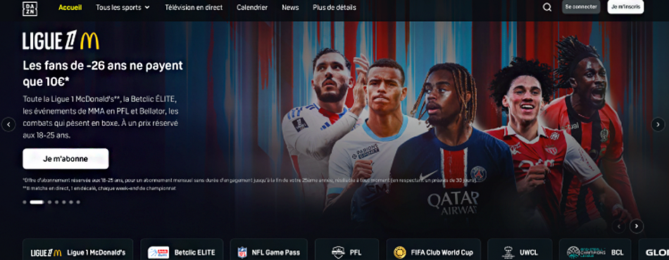 Pour les fans de sport, il y a beaucoup de façon de regarder du sport à la TV. Vous pouvez utiliser MyCanal, qui propose des options via BeinSport ou Eurosport par exemple. Max et Prime Vidéo vous proposent aussi des abonnements sport, mais en ce qui concerne le choix d’une plateforme de streaming 100% sport, le choix est plus que limité : DAZN est l’unique représentant d’un service de SVOD 100 % sport.