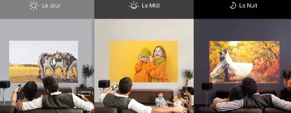 Sa qualité d'affichage en 4K, avec sa bonne luminosité, rend l’expérience visuelle très intéressante, même dans des pièces lumineuses. Lorsque nous l’avons installé en plein jour, il était tout à fait possible d’avoir une image acceptable au regard luminosité lors de la projection par exemple de chaines de télévision, l’expérience de la projection de film devant à notre avis être réservée au noir complet.