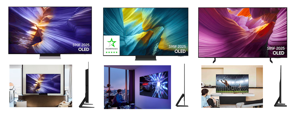 En 2025, Samsung développe sa très évoluée gamme OLED avec 3 nouveaux modèles. Tous bénéficient de la technologie ultra-performante OLED de Samsung offrant des noirs profonds et une large palette de couleurs denses et intenses. Ils sont idéaux pour les amoureux des belles images. On les conseillera à tous ceux qui recherchent une qualité visuelle parfaite.