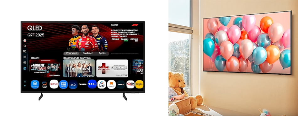 Avec son processeur Q4 AI 4K, il permet une amélioration des performances et de l'expérience utilisateur par l'intelligence artificielle. Sa technologie Quantum Dots agit sur les couleurs pour reproduire 100% du volume colorimétrique et offrir des couleurs riches et éclatantes. Le Q7F dispose par ailleurs lui aussi du 4K Upscalling, pour améliorer la qualité d'image.