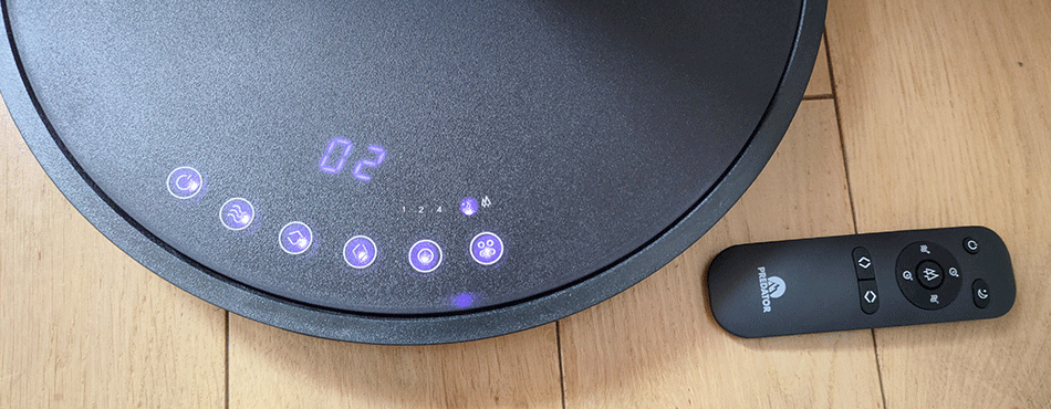 Le ventilateur Predator F20B est livré avec une télécommande qui permet, très logiquement, de sélectionner les fonctions à distance. Mais vous pouvez aussi utiliser les touches tactiles disponibles sur la base.