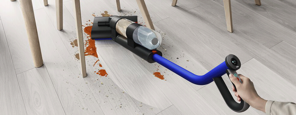 Après avoir identifié les faiblesses des produits concurrents, Dyson propose une toute nouvelle technologie de nettoyage des sols. Le Dyson WashG1 combine des technologies d’humidification, d’absorption et d’extraction qui permettent de laver les sols durs, tout en opérant une séparation entre débris solides et liquides.