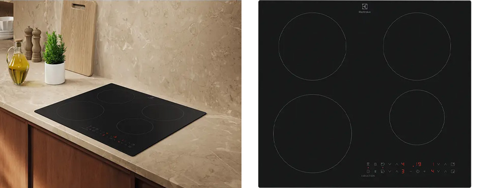 Modernisez votre plan de travail avec la table de cuisson à induction Electrolux EIT60433CT. Elle dispose de 4 foyers avec boosters pour une montée en température ultra-rapide. Sa particularité réside dans son revêtement SaphirMatt : une surface mate élégante qui résiste quatre fois mieux aux rayures qu'une plaque vitrocéramique standard et qui est très facile à nettoyer. Elle est également équipée de la technologie Hob2Hood qui pilote automatiquement une hotte compatible en fonction de la puissance de cuisson utilisée.
