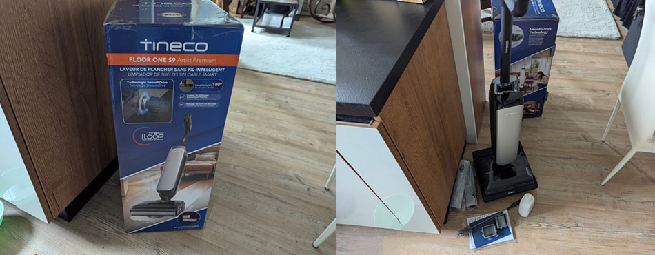 Le Tineco S9 Artist Premium est effectivement très facile à manipuler et à utiliser grâce au SmoothDrive, le guidage devient plus simple que sur ses prédécesseurs. Ma surface étant plutôt petite et encombrée, je le trouve assez maniable. Il se faufile facilement entre les pieds de chaises, pivote à 90° et passe sous les meubles de cuisine.