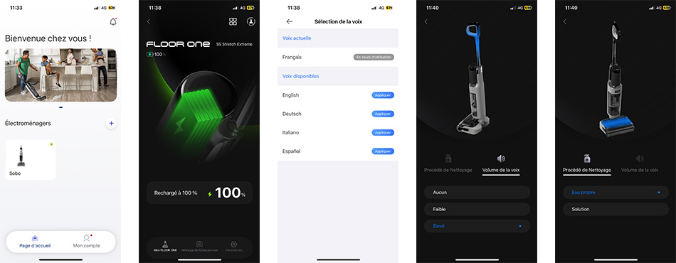 L'application Tineco Life permet d'accéder à des informations sur votre aspirateur, comme son état de batterie. Il est également utile pour créer son propre mode personnalisé, changer la langue et le volume de la voix. L'appairage de l'appareil avec l'application est très facile, il suffit de suivre les indications indiquées sur l'application.