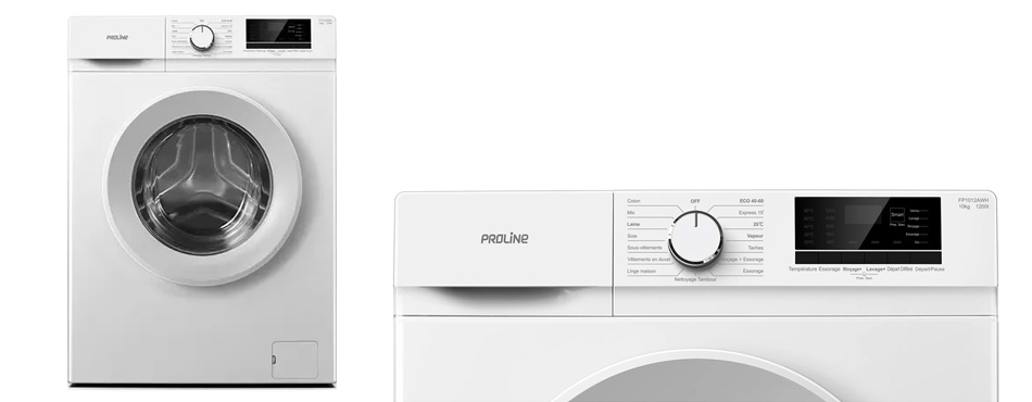 Il offre également la possibilité de choisir entre 5 températures de lavage : 20°, 30°, 40°, 60° et 90°C et dispose d'un programmateur électronique. Comme les lave-linges précédents, Proline a également doté son appareil d'un départ en différé de 1 à 24h pour une meilleure gestion de son temps.