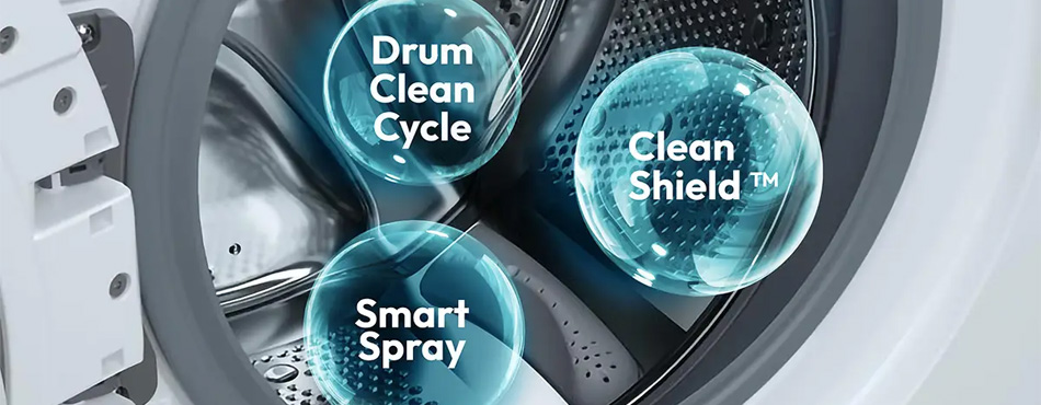 En complément, le système Smart Spray utilise un double dispositif d'injection d'eau pour nettoyer efficacement le verre de la porte, éliminant ainsi les résidus de détergent après chaque cycle. Pour parfaire ce dispositif, la fonction vapeur permet de détendre les fibres, facilitant le repassage tout en éliminant les allergènes pour un linge plus sain au quotidien.